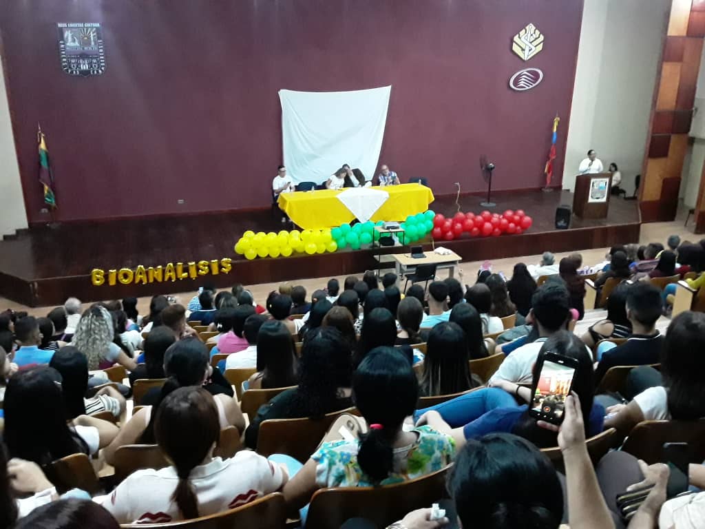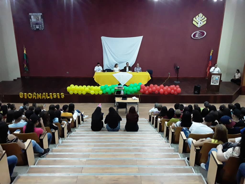 Los nuevos estudiantes participaron en una conferencia dictada por el prof. Eudomario Alcántara titulada “Soy estudiante de Bioanálisis”, para ir creando en los futuros licenciados, esa identidad con la carrera que próximamente empezarán a estudiar.