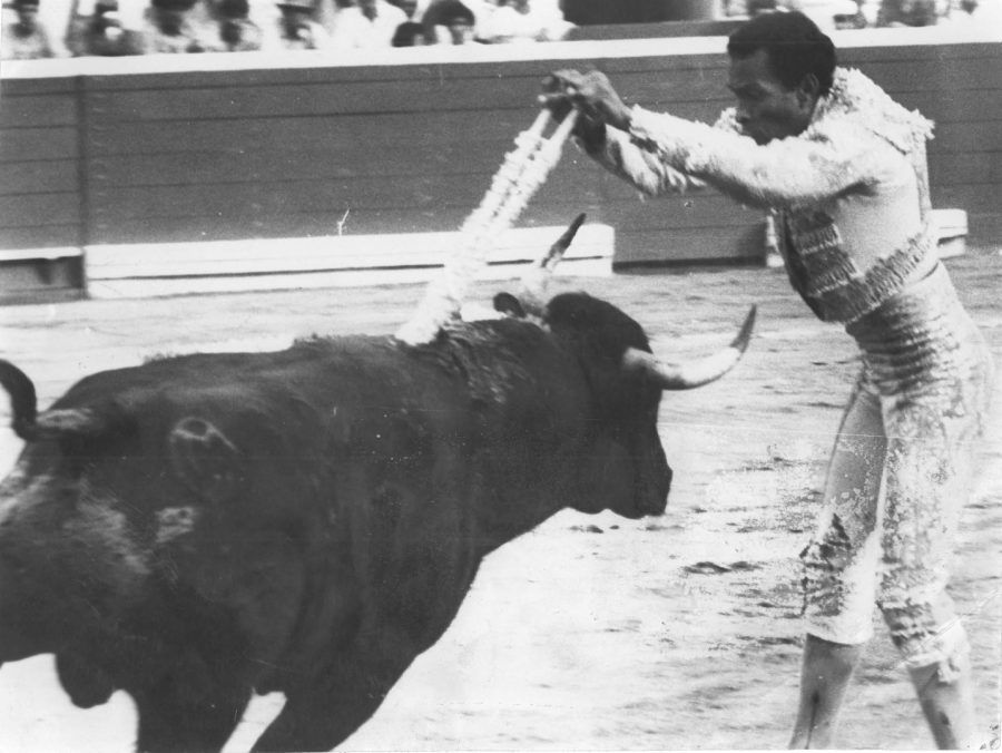 Manolete Torea con el capote en su presentación histórica en el año 1946 en Maracay