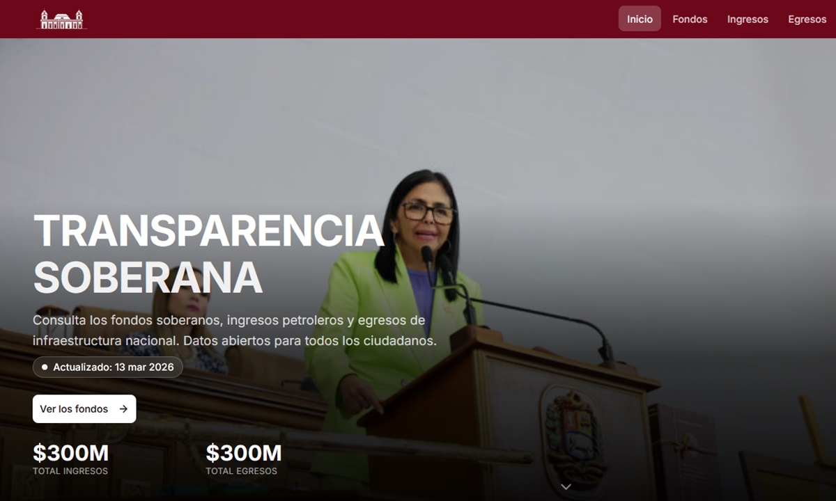 CIUDAD MCY.- El Gobierno nacional activó el portal Transparencia Soberana, una plataforma tecnológica desarrollada para exponer el ingreso y uso de los recursos provenientes de los fondos soberanos del país. Esta iniciativa fue impulsada por la presidenta (E) de la República Bolivariana de Venezuela, Delcy Rodríguez, y quien desee puede acceder a través del siguiente enlace: https://www.transparenciasoberana.gob.ve/