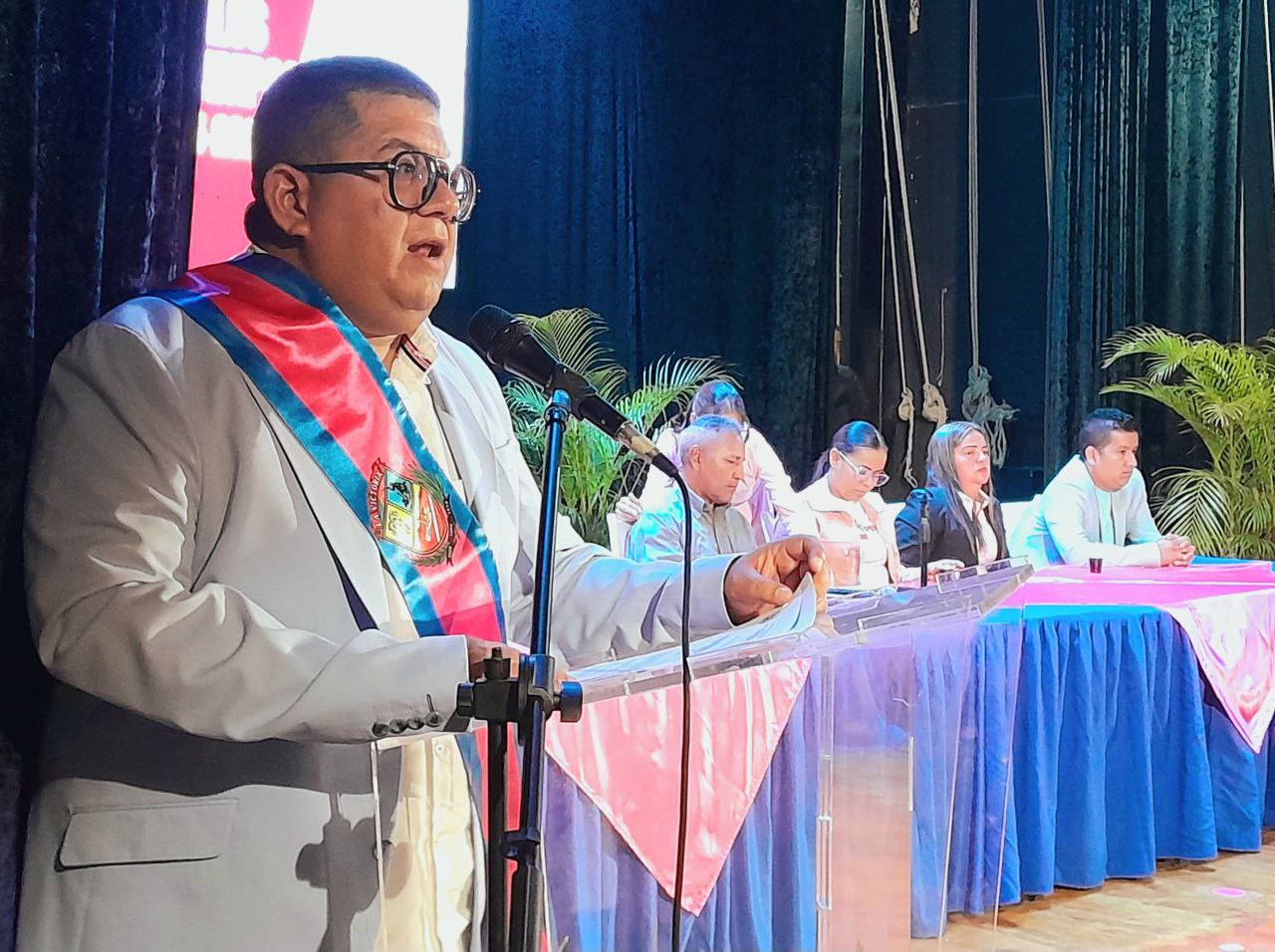 Las instalaciones del Teatro Ribas fue el escenario para desarrollar esta actividad protocolar y legislativa, la cual estuvo encabezada por el concejal Miguel Motabán, presidente del Concejo Municipal. Igualmente, contó con la presencia de líderes de comunidades, jefes y jefas de calle, Unidades de Batalla Bolívar Chávez (Ubch), estructuras del Partido Socialista Unido de Venezuela (PSUV), equipo político y el poder popular, respaldando al alcalde en esta nueva etapa de gobierno enmarcada en el Plan de las 7 Transformaciones (7T).