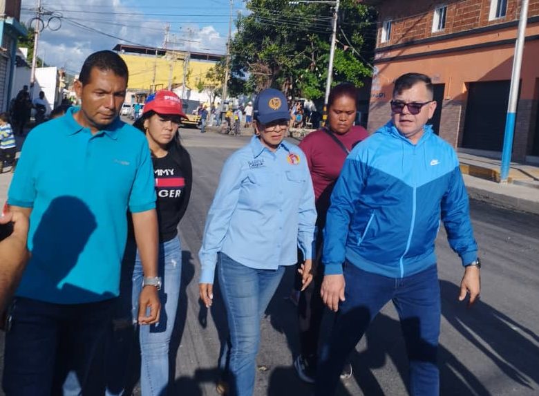 CIUDAD MCY.- La gobernadora del estado Aragua, Karina Carpio, y el alcalde del municipio sucre, Wilson Coy, supervisaron los trabajos de colocación de asfalto en la Avenida Bolívar entre la calle Negro Primero y el Matadero de Cagua en el Sector Barrancón.