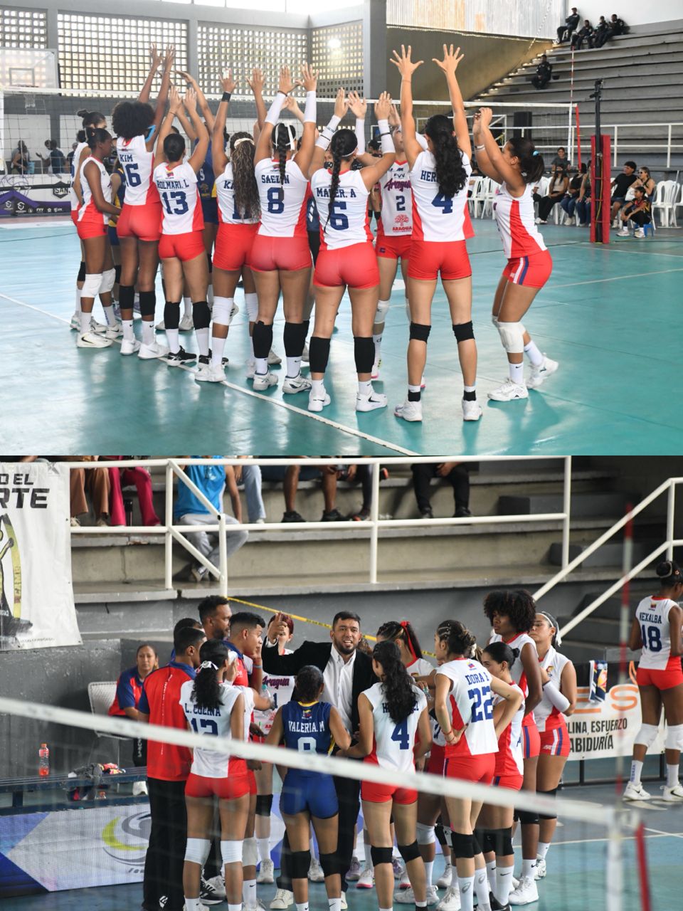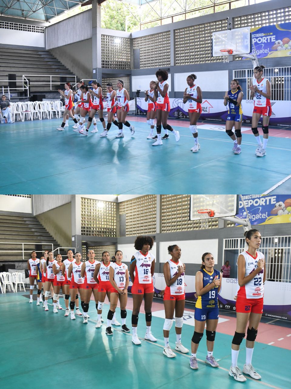 El conjunto aragüeño inició con su sexteto conformado por la capitana Leydi Colina, la líbero Ana Muñoz, Kamilly Vitória, Yllen Gutiérrez, Nelxalba Mejías, Dora Barrios y Fabiana Montoya, mostrando desde el arranque disposición competitiva en condición de visitante.