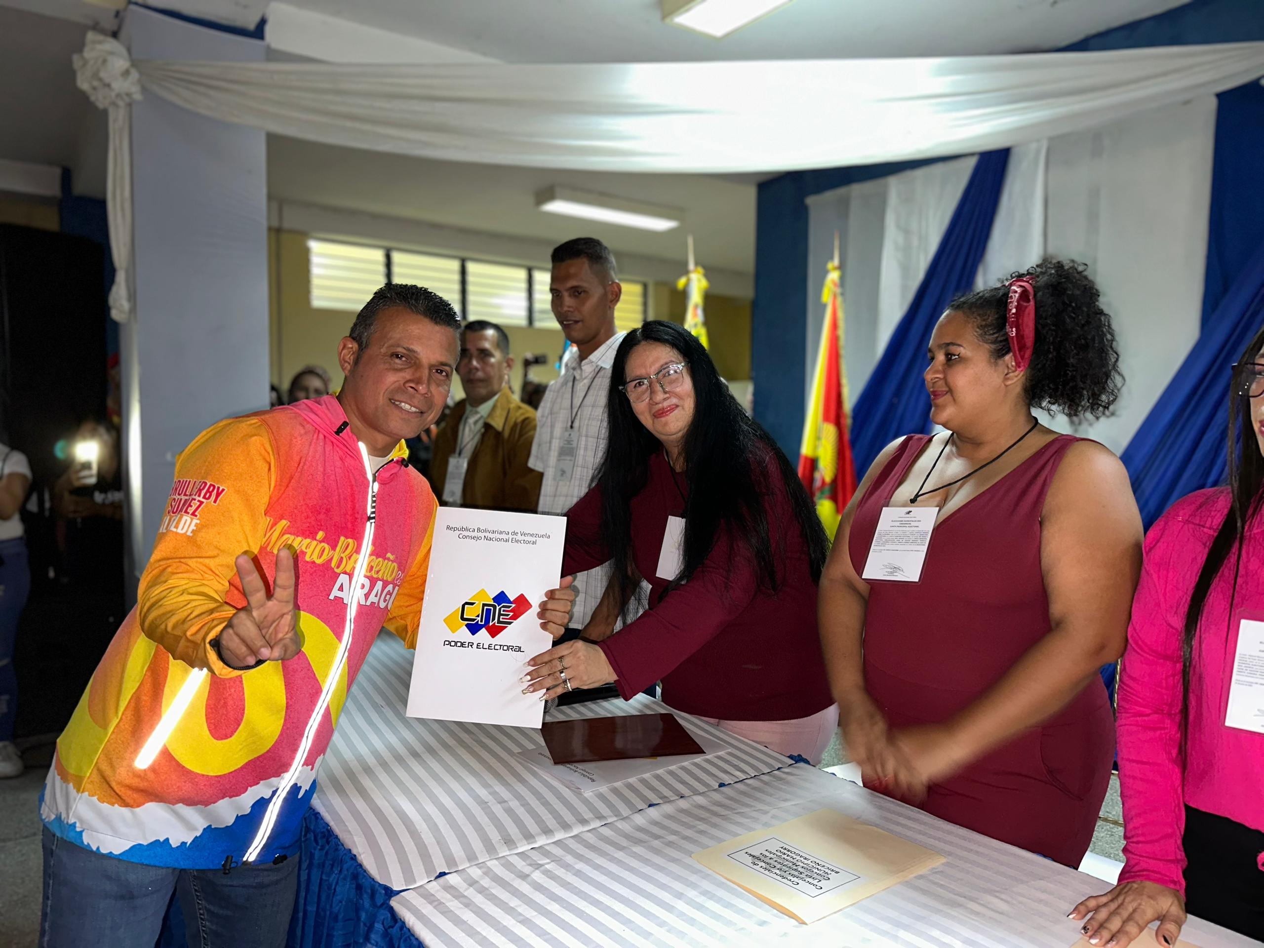 CIUDAD MCY.- El pueblo bolivariano lleno de algarabía ocupó los espacios de la Universidad Simón Rodríguez (UNESR) ubicada en la parroquia Caña de Azúcar, municipio Mario Briceño Iragorry (MBI) para acompañar la proclamación de parte del Concejo Nacional Electoral (CNE), del ciudadano Brullerby Gregorio Suárez Maramara quién fue acreditado de manera oficial como alcalde electo para un tercer periodo de gestión en MBI, tras obtener la mayoría de los resultados electorales por parte del PSUV y demás partidos de la Revolución Bolivariana en los recientes comicios municipales del 27 de julio, sumando más de 15 mil votos a favor.