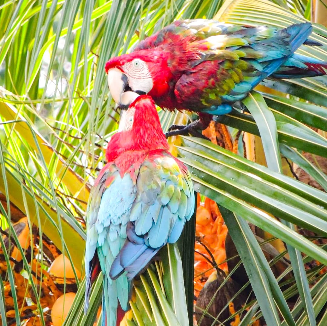 Durante la liberación, las guacamayas emprendieron vuelo hacia los árboles más altos de la zona, explorando su nuevo hábitat y comunicándose entre sí.