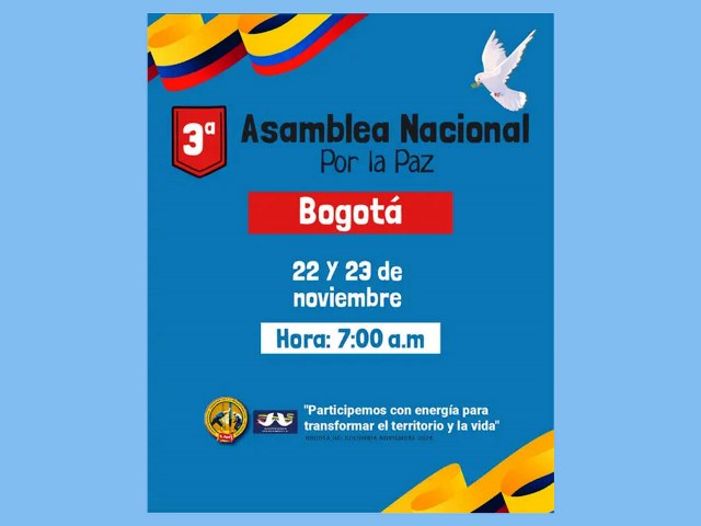 CIUDAD MCY.-La III Asamblea Nacional por la Paz se inicia este viernes en Colombia con el fin de solucionar los conflictos en diversas áreas en la nación suramérica.