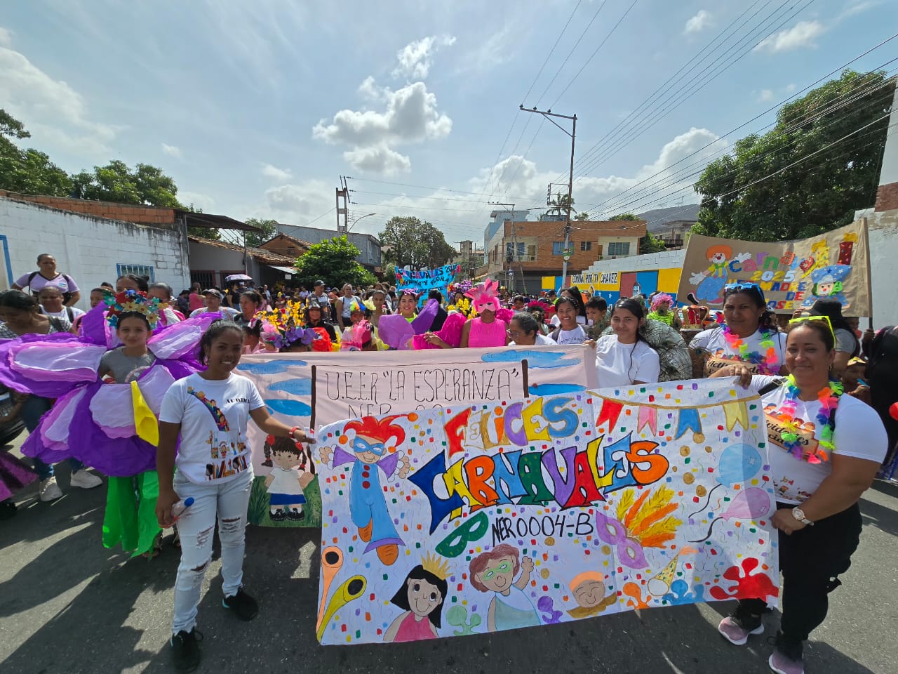 CIUDAD MCY.- El vibrante y colorido desfile de comparsas escolares llenó las calles de Las Tejerías de alegría y entusiasmo, a propósito de los Carnavales Seguros y Felices 2025.