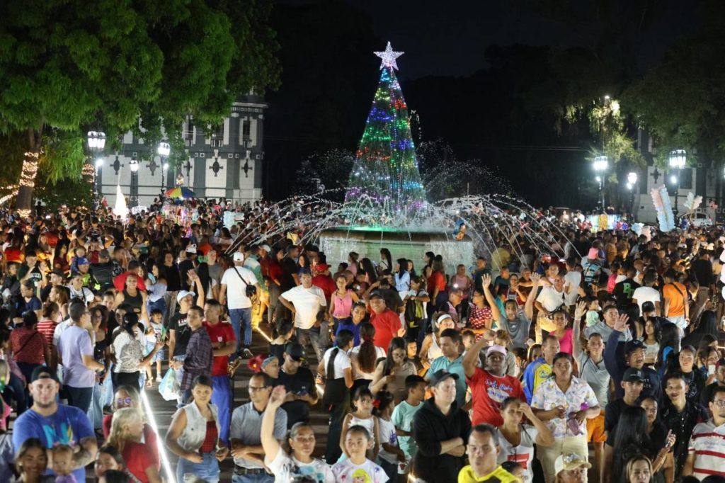 La comunidad aragüeña, junto a la Gobernadora, el alcalde del municipio Girardot, Rafael Morales, el presidente del Cleba, José Arias, y otras autoridades regionales, realizaron el conteo regresivo correspondiente para encender las luces, que impactaron a todos por su magnitud y dar inicio a una de las celebraciones más hermosas y esperadas por todos los venezolanos.