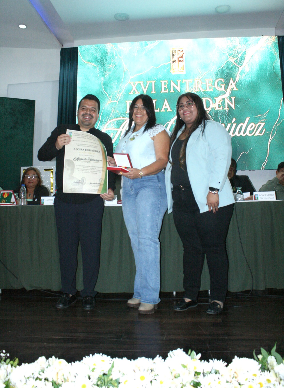CIUDAD MCY.- El sentido de permanencia y constancia que han mantenido los maestros y maestras de Santa Cruz de Aragua, quienes decidieron en su momento no soltar las riendas en favor de la enseñanza a los niños, niñas y adolescentes, fue la inspiración para que la directiva del Concejo Municipal, junto al alcalde Tony García, hiciera entrega de la XVI Orden Magisterial Docente “Alcira Bermúdez”, en acto realizado en la Casa de la Cultura “Claudio Castillo” de la jurisdicción.