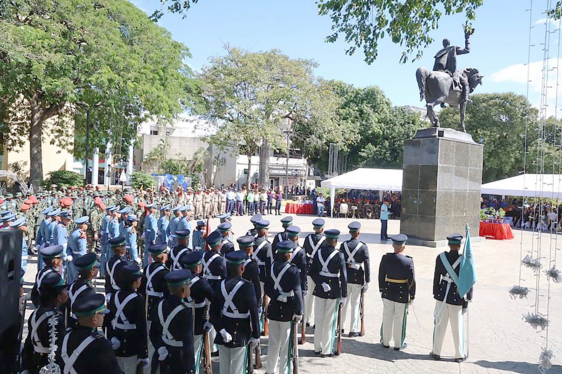 El evento, que contó con la presencia de la gobernadora del estado Aragua, Karina Carpio; el presidente del Consejo Legislativo del estado bolivariano de Aragua (Cleba), José Arias; el secretario de Prevención y Seguridad Ciudadana del estado Aragua, G/D Marlon Dulcey Parada; el comandante de la Base Aérea El Libertador, G/D Jesús Alberto Fernández Peñaloza; el alcalde de la jurisdicción, Wilson Coy, y otras autoridades, rindió homenaje a los héroes de la independencia americana.