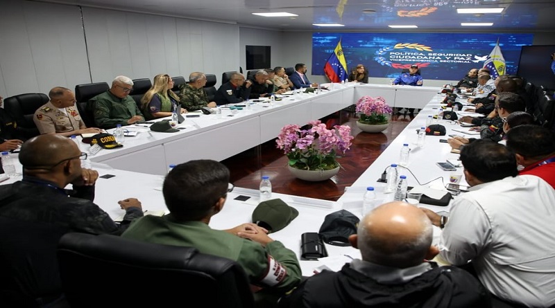CIUDAD MCY.- El vicepresidente sectorial de Política, Seguridad Ciudadana y Paz, Diosdado Cabello, sostuvo una nueva reunión con el Consejo Ministerial de Seguridad, con autoridades de los cuerpos policiales y de la Fuerza Armada Nacional Bolivariana (FANB), a fin de establecer estrategias para la consolidación de la paz en el país.