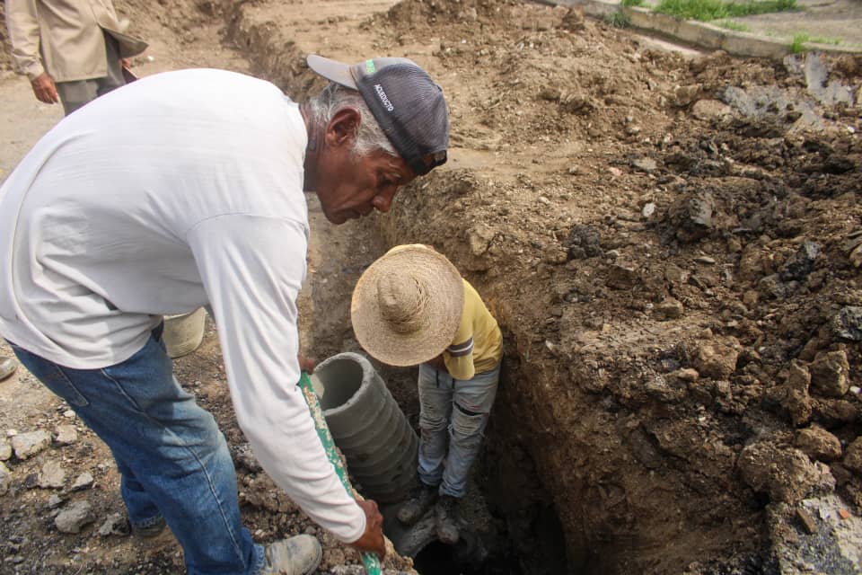 Al mismo tiempo, se realiza la construcción de 150 metros de colectores en la calle 3 de la comunidad 18 de Septiembre del eje Güerito.