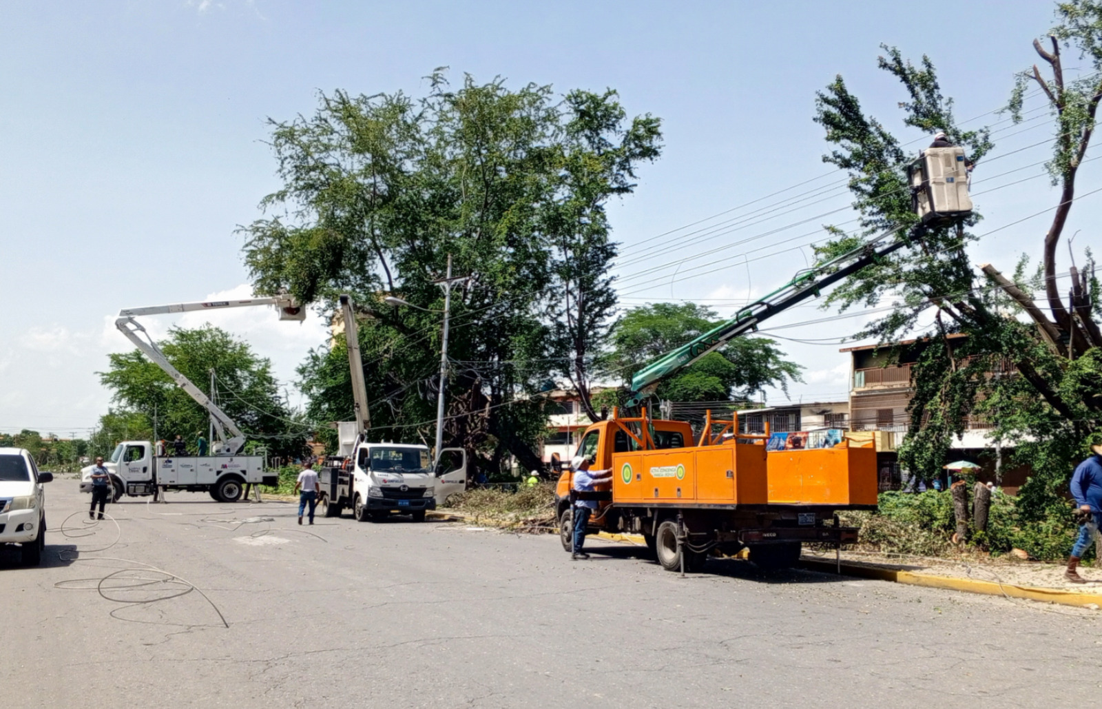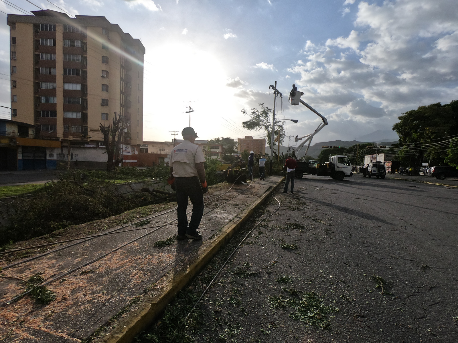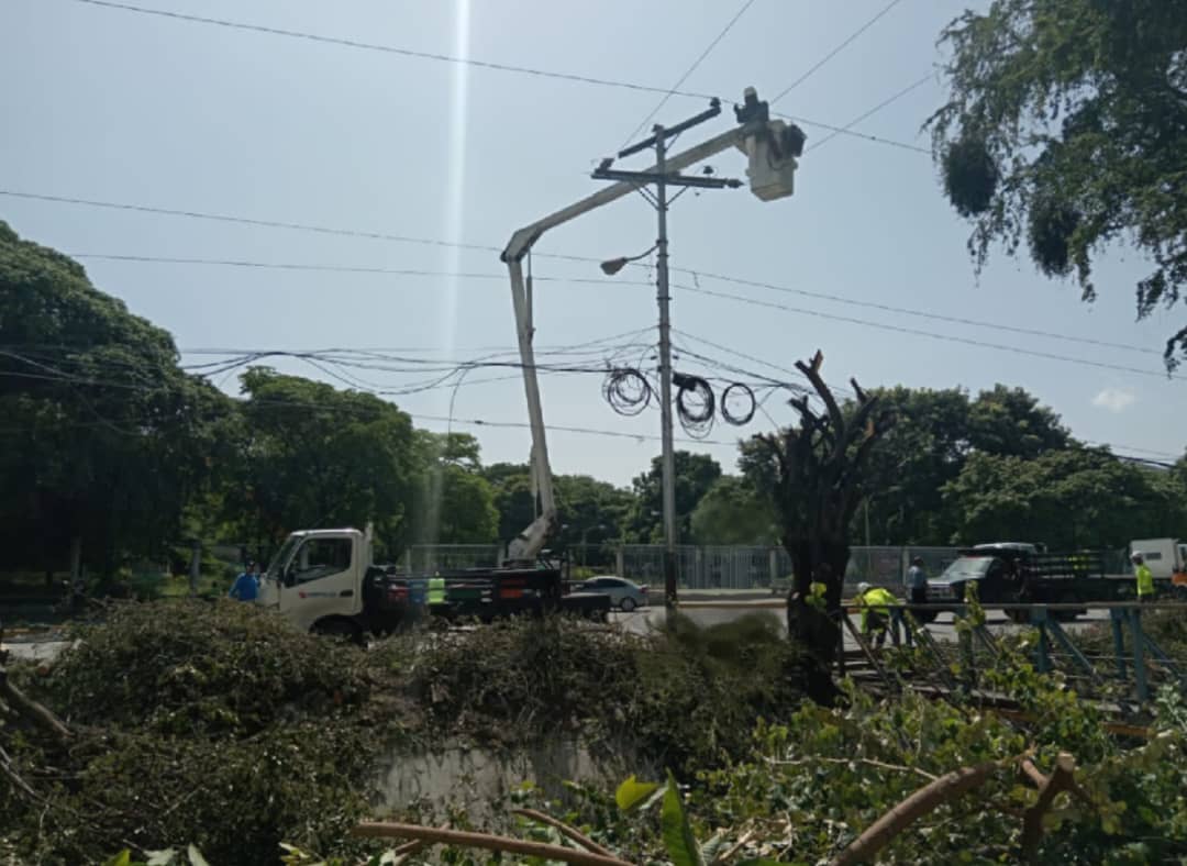 CIUDAD MCY.-Tras una ardua jornada se restableció el servicio eléctrico en la parroquia Las Delicias, en el estado Aragua, luego que un árbol cedió e impactó las redes de media tensión, generando el desprendimiento del tendido eléctrico en la calle El Canal, entre los sectores La Cooperativa y Los Olivos Nuevos del municipio Girardot.