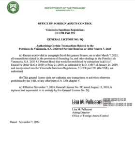 CIUDAD MCY.- La administración de Estados Unidos (EE. UU.), a través de un comunicado del Departamento del Tesoro estadounidense, prorroga hasta el próximo año las licencias generales a cuatro corporaciones de servicios petroleros de ese país para trabajar con la empresa estatal de energía de la República Bolivariana, Petróleos de Venezuela (PDVSA). De acuerdo con el documento de tres páginas, la Oficina de Control de Activos Extranjeros (OFAC) anunció que la licencia estará vigente hasta el 9 de mayo de 2025.