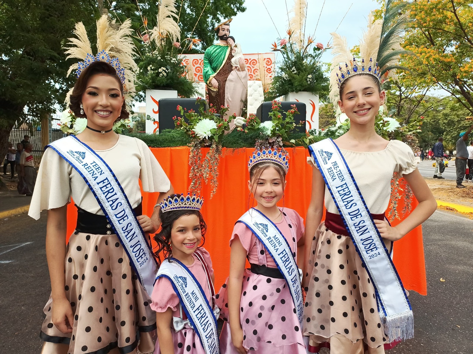 Renny Yépez, Jenni Guzmán y su equipo, del evento de José Casanova Godoy, fueron los creadores de la carroza principal del desfile que exhibió a las reinas electas de la Feria de San José 2024, la cual estuvo inspirada en la celebración del Día del Santo Patrón de Maracay, San José.
