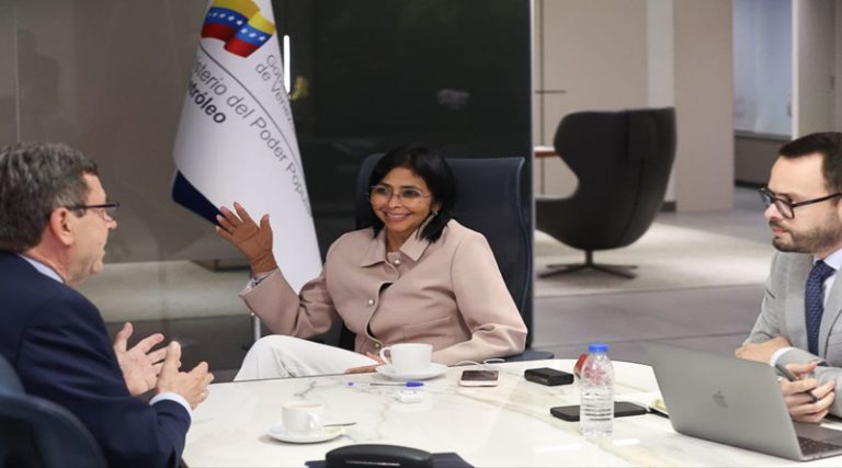 CIUDAD MCY.- La Ministra del Poder Popular para el Petróleo, Delcy Rodríguez, lideró este lunes la reunión de trabajo con los directivos de la empresa petrolera española, Repsol, para revisar las alianzas estratégicas que mantienen con PDVSA y consolidar relaciones de cooperación en beneficio mutuo.