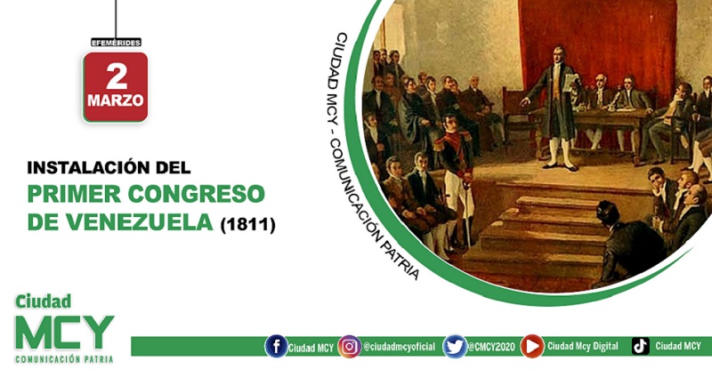 CIUDAD MCY.- El Primer Congreso Nacional de Venezuela se instauró el 2 de marzo de 1811, siendo el más antiguo de América Latina y el segundo de toda América.