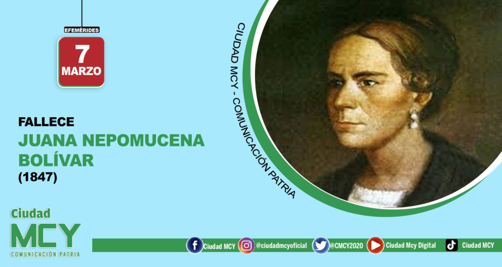 CIUDAD MCY.- Juana Nepomucena Bolívar Palacios (Caracas, 16 de mayo de 1779 – id. 7 de marzo de 1847), es conocida por haber sido hermana mayor del Libertador Simón Bolívar.