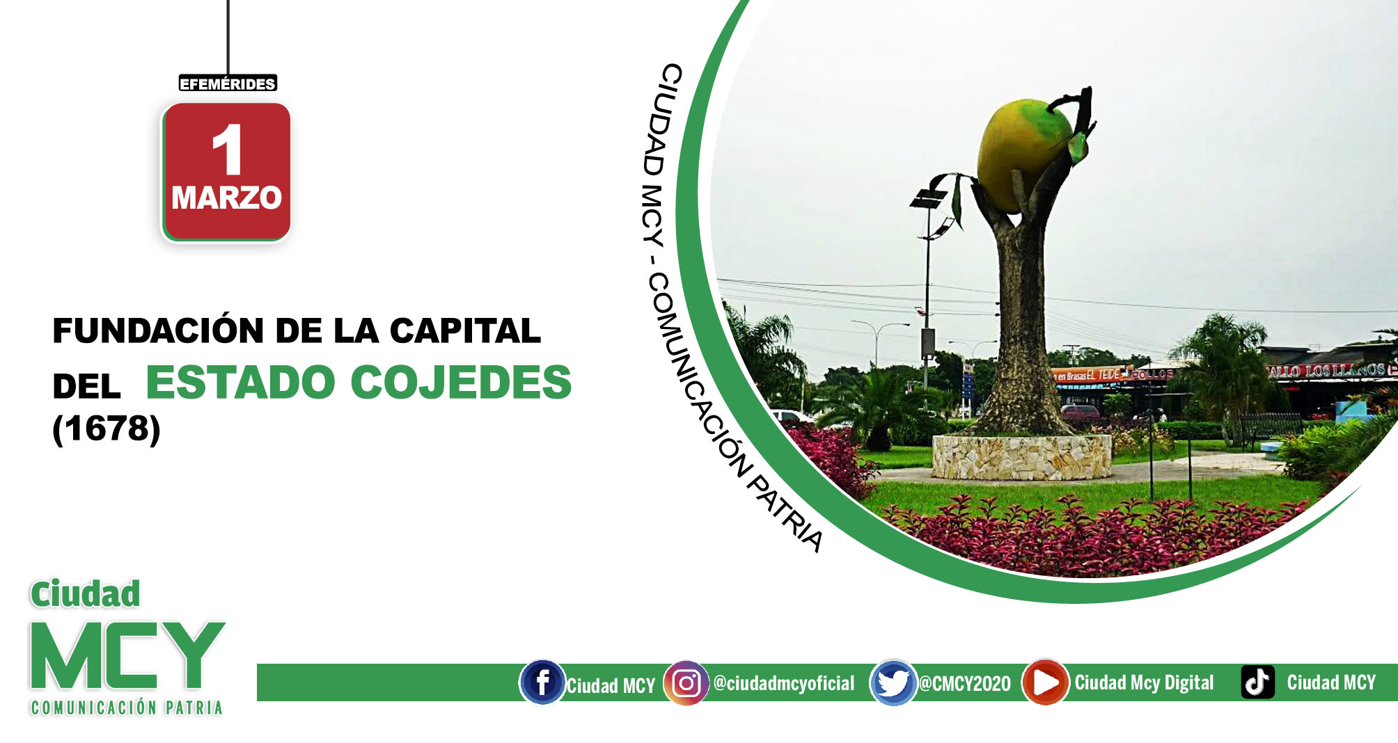 CIUDAD MCY.- Capital: San Carlos. Fundada en 1678. Se encuentra en los Llanos Altos centrales a 152 metros sobre el nivel del mar, a las orillas del río Tirgua, que pasa a llamarse río San Carlos. Desarrolla funciones administrativas, actividades comerciales y de importantes agroindustrias que procesan arroz, sorgo, tabaco y maíz. Es un centro ganadero regional. La ciudad ha tomado dinamismo con el desarrollo local de agricultura irrigada y mecanizada.