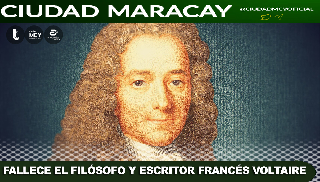 CIUDAD MCY.- El 30 de mayo de 1778, muere Voltaire, escritor y filósofo francés, uno de los principales pensadores de la Ilustración. Su crítica a la iglesia y al régimen feudal contribuye a la preparación ideológica de la Revolución Francesa. Entre su obra destaca “Tratado sobre la tolerancia”, “Cartas filosóficas o cartas inglesas, “El fanatismo o Mahoma el profeta”, “Ensayo sobre las costumbres y el espíritu de los pueblos”. Muere a los 83 años.