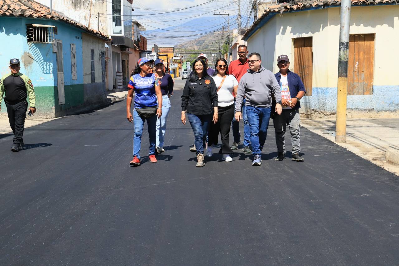 CIUDAD MCY.-La gobernadora del estado Aragua, Karina Carpio, visitó la calle Mariño, ubicada en el municipio Sucre, para supervisar los trabajos de rehabilitación vial que incluyen la colocación de mil 200 toneladas de asfalto, aprobados por el Consejo Federal de Gobierno.