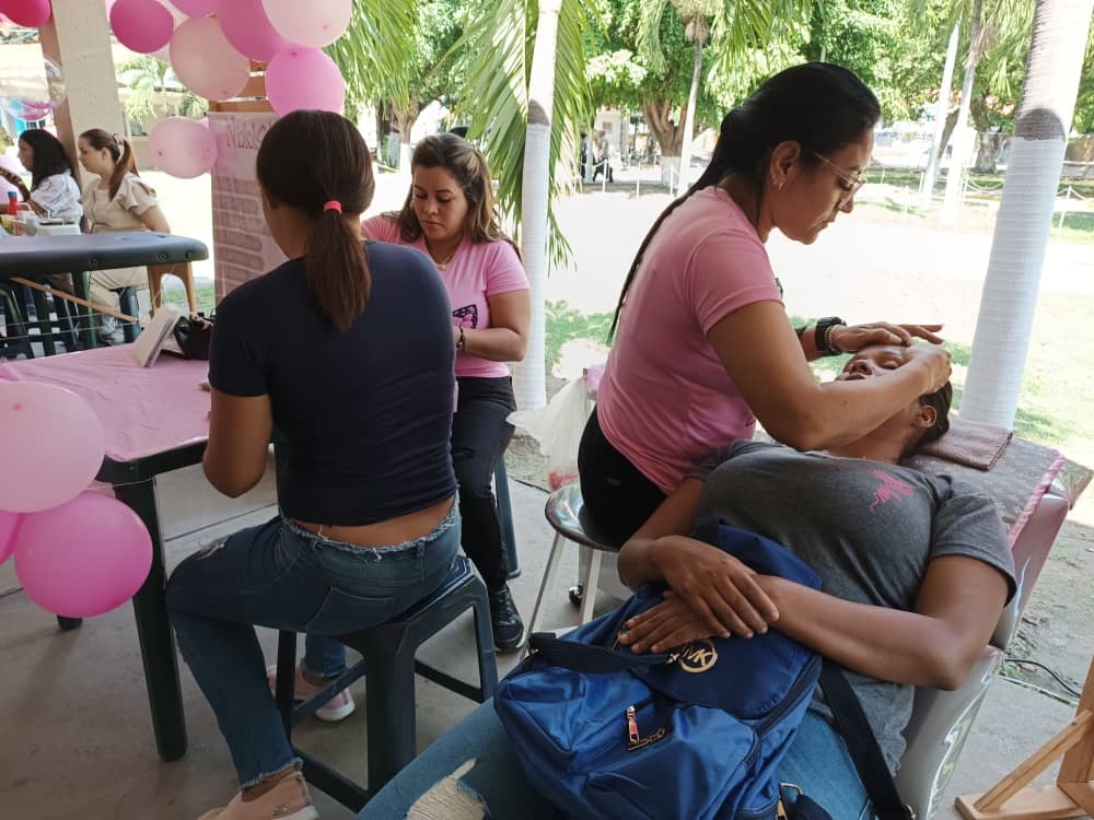 A su vez, la cosmiatra Karelys Cabeza, quien es paciente oncológica, ofreció orientaciones a toda la concurrencia acerca del cuidado que deben realizarse en la piel durante el tratamiento de esta enfermedad. A propósito de este conversatorio, fueron instalados diversos puestos de atención para las mujeres en los que recibieron tratamientos en la piel y orientaciones para realizar el mismo proceso en casa.
