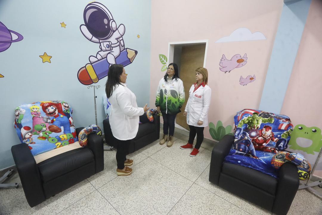 CIUDAD MCY.-Desde el Hospital Central de Maracay (HCM), la gobernadora, Karina Carpio, en compañía de la autoridad única en Salud, Shirley Hernández, y la directora del centro de salud, Maribel Núñez, realizaron la supervisión y entrega de la sala hemato-oncológica infantil totalmente rehabilitada, además de la entrega formal de instrumentaria clínica, gracias al trabajo mancomunado con el Sistema del 1×10 del Buen Gobierno, las Bricomiles y la empresa privada.