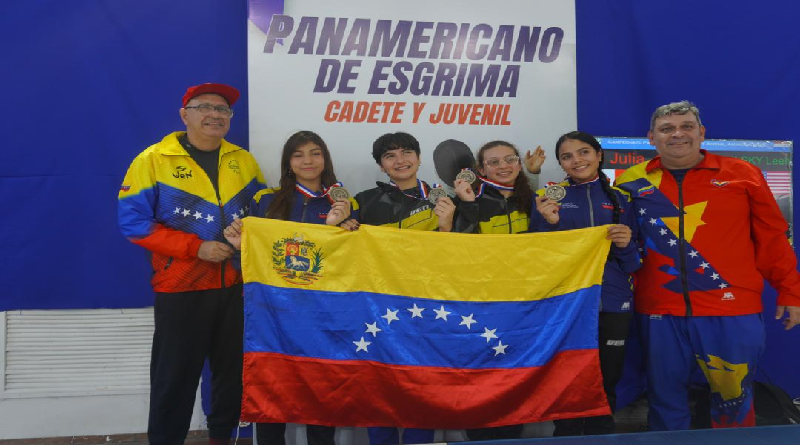 CIUDAD MCY.- El equipo de espada femenina venezolana conformado por Victoria Guerrero, María Tuozzo, Victoria Pérez y Valeria Escobar, triunfó con la presea de bronce en el Campeonato Panamericano de Esgrima que tiene lugar en Asunción, Paraguay.