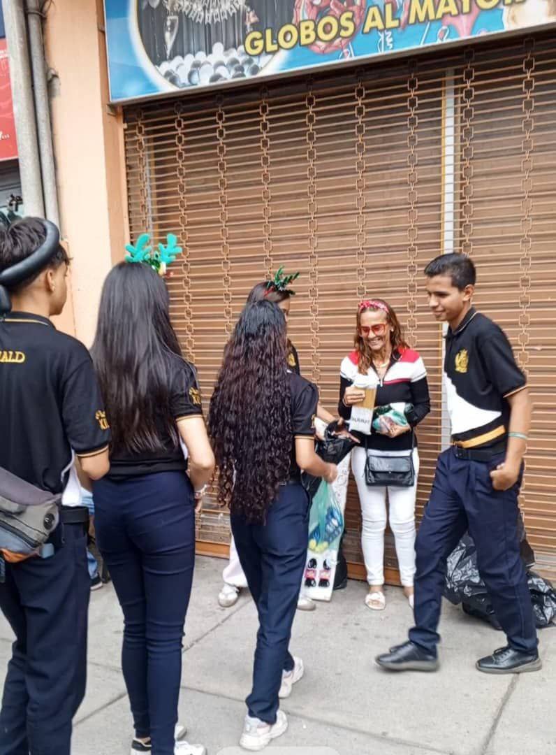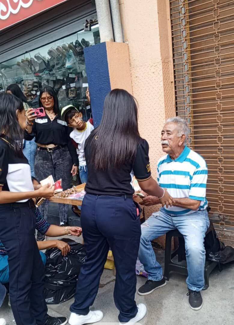 Más de 120 cursantes de 4to y 5to año salieron al casco central de Maracay para entregar significativas y valiosas ayudas a vendedores informales de la tercera edad, como parte del servicio comunitario que lleva a cabo la institución.