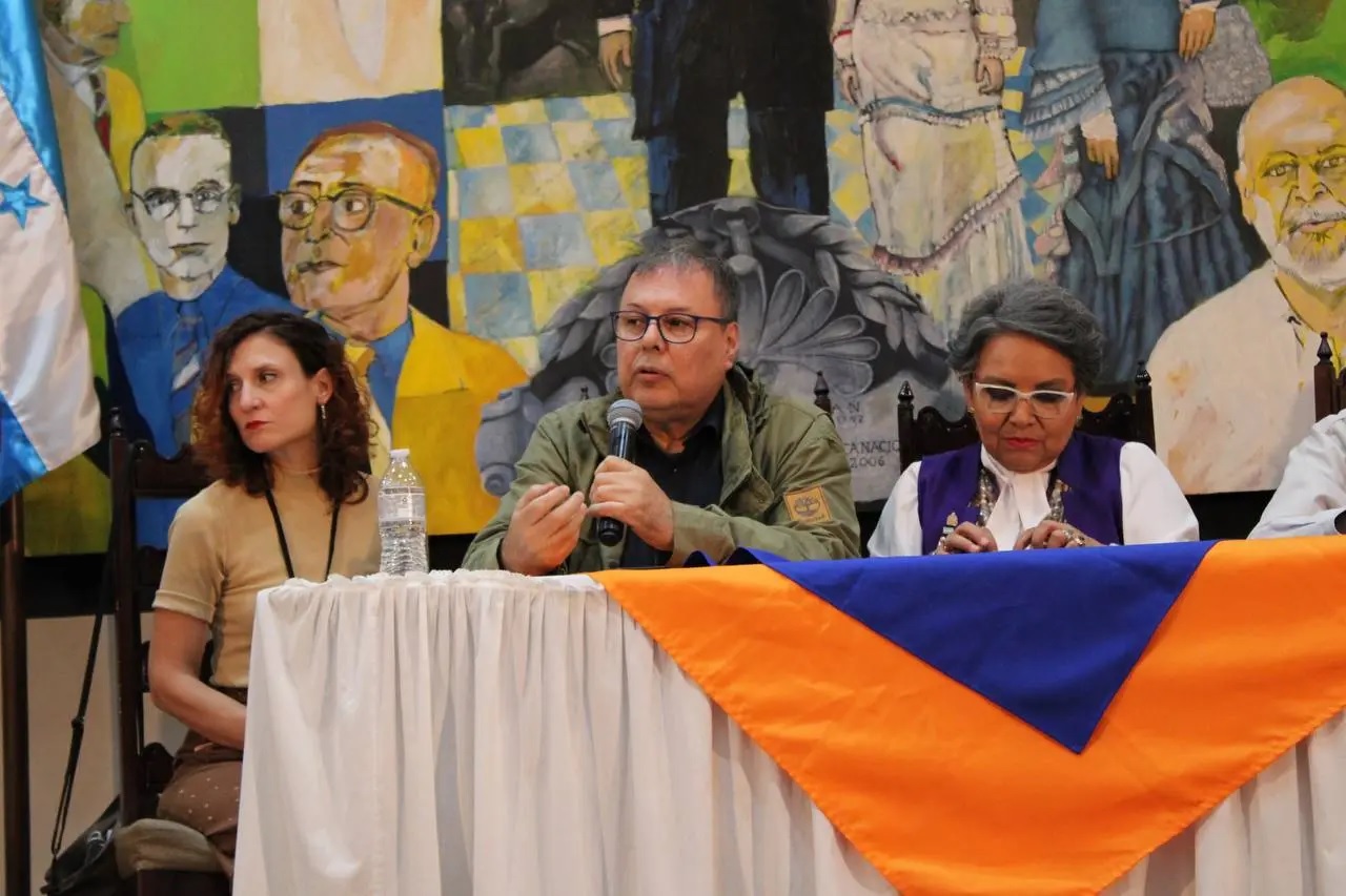 El viceministro Cazal compartió el estrado con la secretaria de Estado del despacho para las Culturas, las Artes y los Patrimonios de los Pueblos de Honduras, Anarella Vélez; y el escritor venezolano Luis Britto García, así como con los invitados internacionales Elisa Ferrer, Dionizio de Jesús y Alaín Lara, quienes también expusieron parte de la cultura y experiencias con las letras de los pueblos que representan.