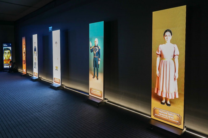 En total son 19 escenas de exposición, que resaltan los aspectos más relevantes de la vida del Libertador. Además, encontrarán cuadros animados con IA de las figuras más destacadas de la época independentista, con grandes pantallas dispuestas para interactuar a través de avatares, entre otras actividades que muestran la inserción de la tecnología al sistema educativo del país.