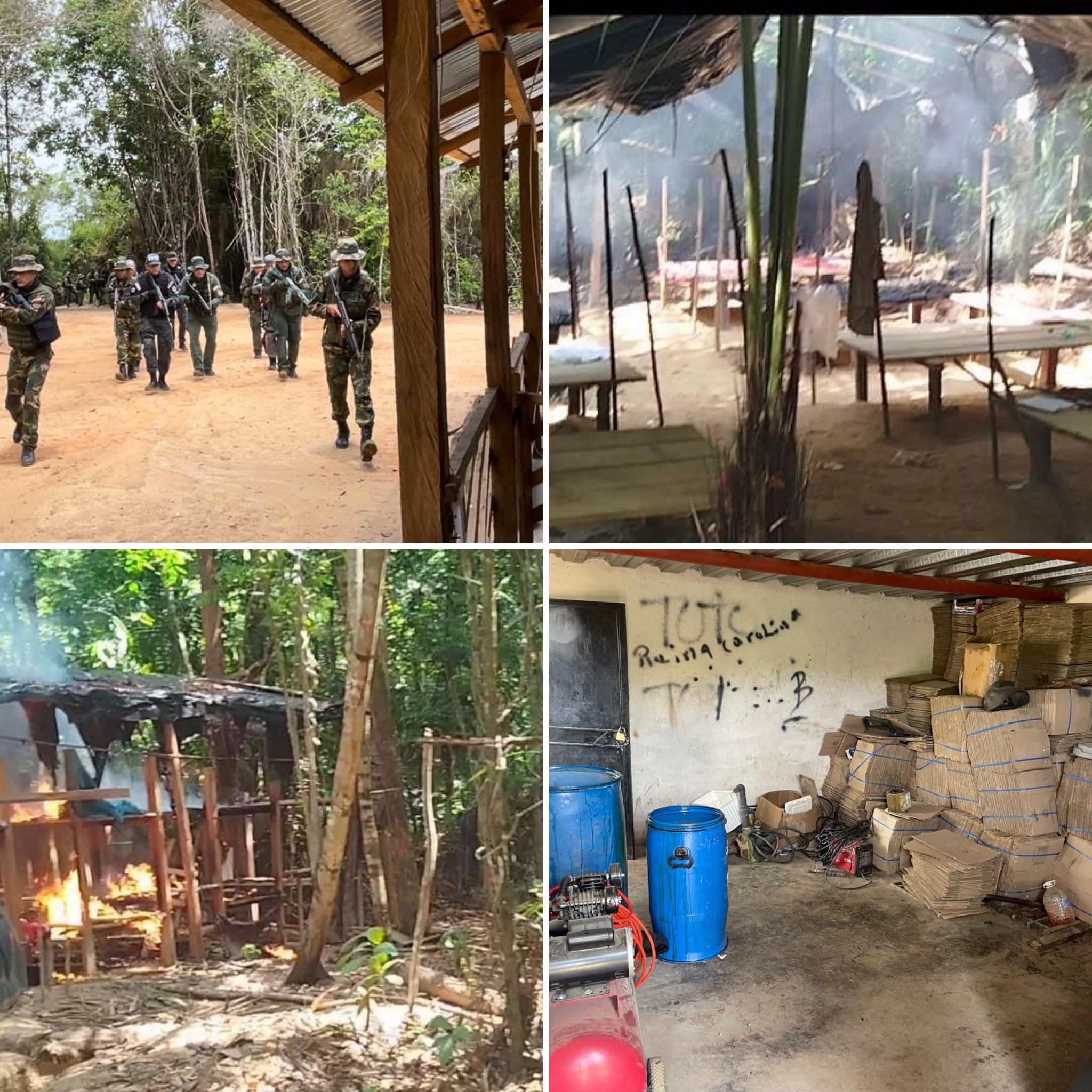 «En el marco de la Operación Relámpago del Catatumbo, en el estado Zulia, municipios Catatumbo y Semprún, FANB y la Dirección Nacional Antidrogas localizan, desmantelan y destruyen nueve (09) objetivos estructurales, usados como fachadas para el almacenamiento y procesamiento de droga, tráfico de armas, municiones y explosivos», indicó Hernández Lárez desde la red social X.