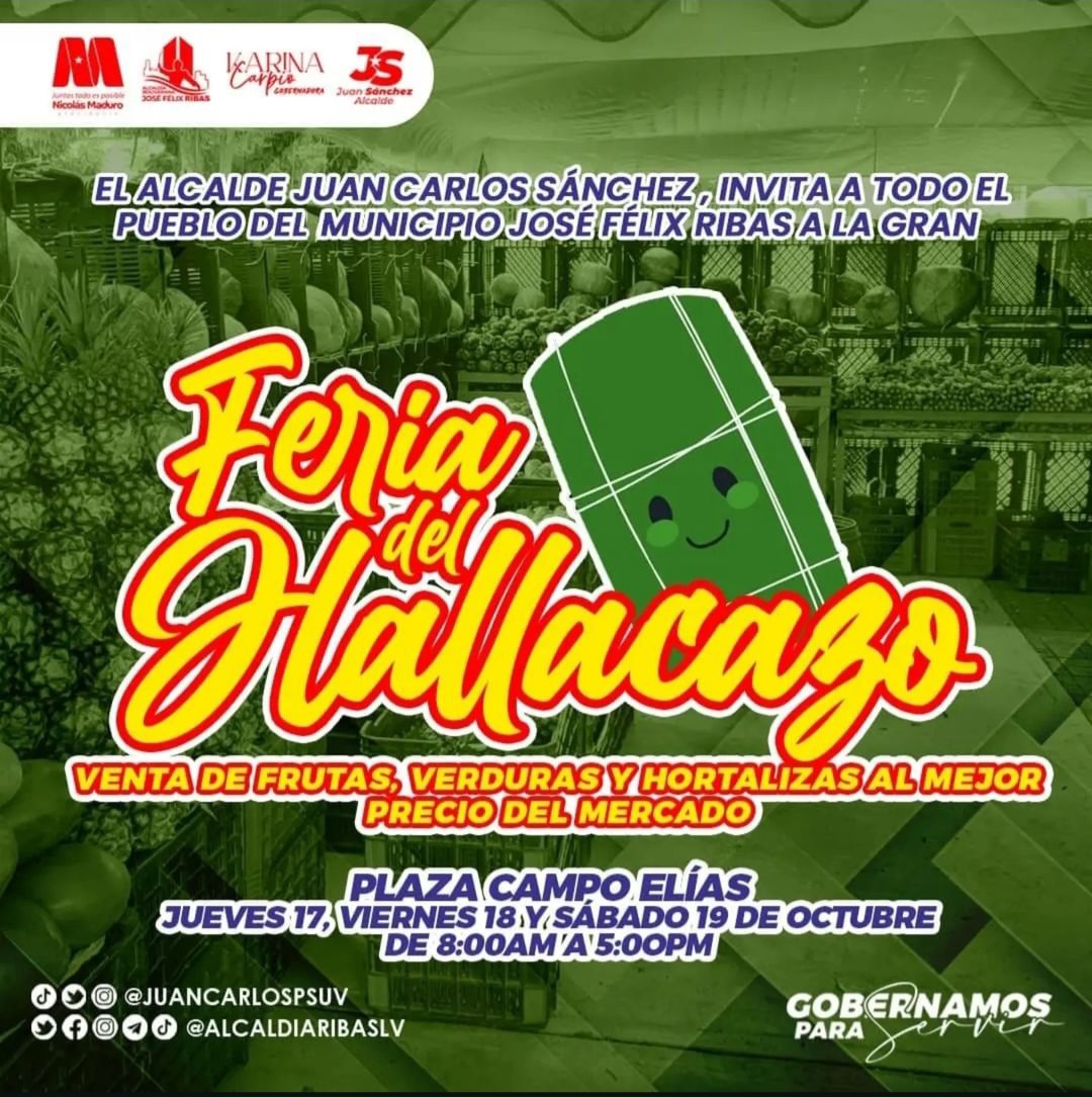 CIUDAD MCY.- A propósito de las fiestas decembrinas, en el municipio José Félix Ribas se realizará la “Feria del Hallacazo”, actividad en la que los habitantes lograrán adquirir a precios accesibles los ingredientes que forman parte de la especial cena navideña.