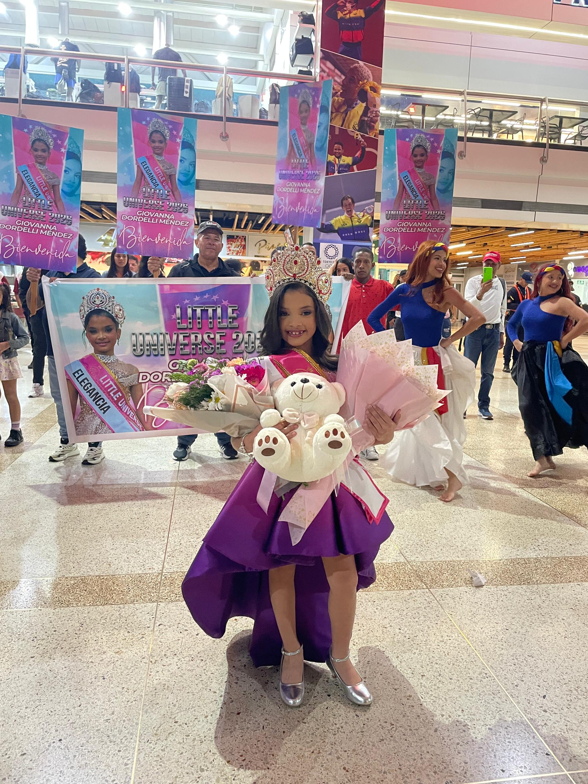CIUDAD MCY.-Tras dejar a Venezuela en la cima de la belleza universal, la pequeña y brillante aragüeña Giovanna Dordelli Méndez, regresó al país con el título «Little Universe 2026».
