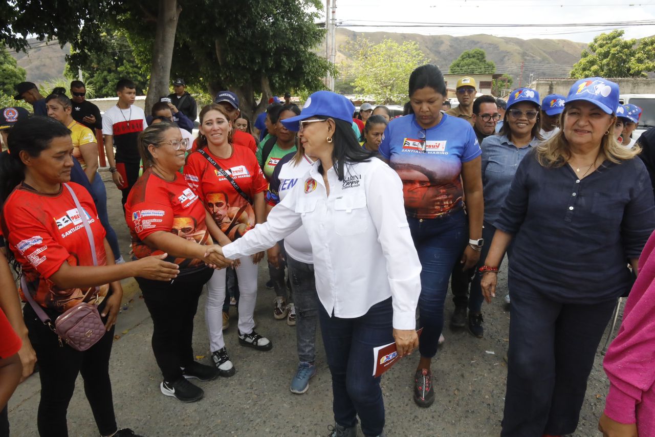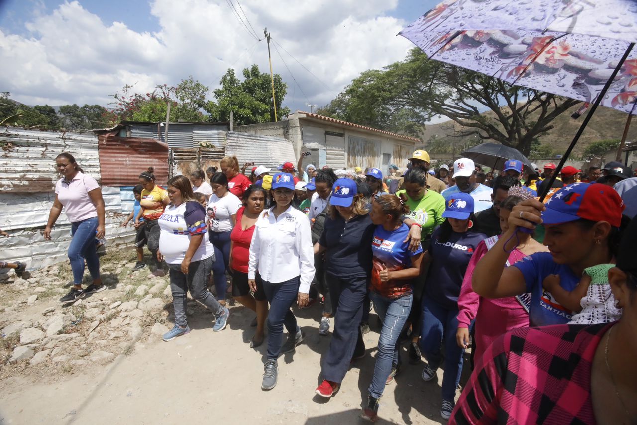 CIUDAD MCY.-En cumplimiento a las políticas de atención social que orienta e impulsa el presidente Nicolás Maduro, así como el acercamiento del Gobierno Bolivariano con el pueblo, la gobernadora Karina Carpio y la madrina del estado Aragua, Yelitze Santaella y la alcaldesa Joana Sánchez recorrieron las calles de la parroquia Pedro Arévalo Aponte del municipio Santiago Mariño.