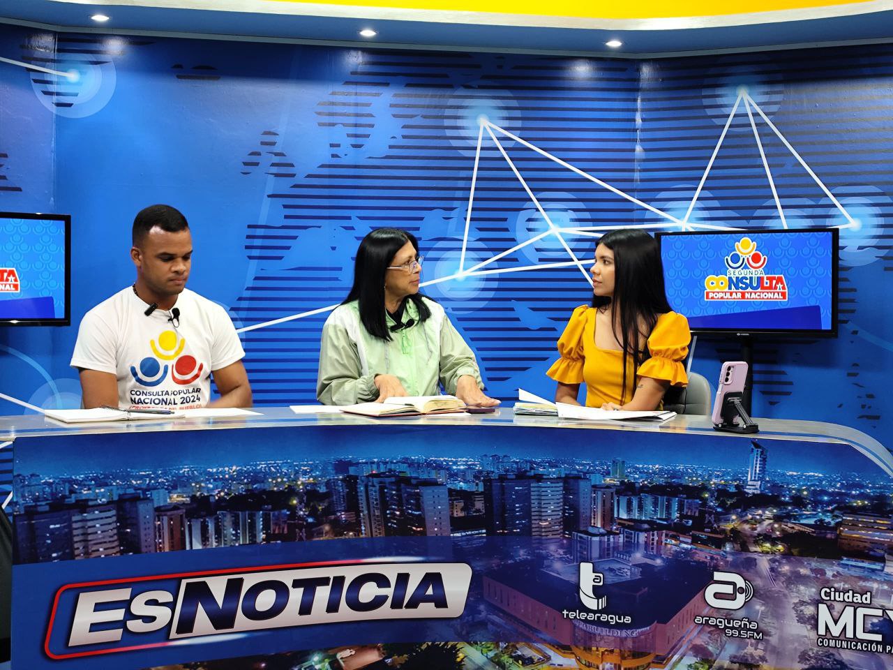 CIUDAD MCY.- A propósito de la segunda Consulta Popular Nacional 2024 que se realizó en el país, la gobernadora Karina Carpio junto al director del Ministerio de Comunas para el estado Aragua, Ubaldo Croquer, ofreció una entrevista para Telearagua.