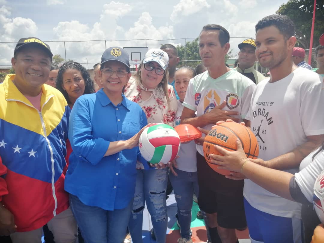 CIUDAD MCY.- En el sector Las Mercedes, parroquia Castor Nieves del municipio José Félix Ribas, la gobernadora Karina Carpio junto al alcalde Juan Carlos Sánchez, el secretario de Prevención y Seguridad Ciudadana, G/D Marlon Dulcey Parada; la secretaria del Poder Popular para el Socialismo Social y Territorial, de la Alcaldía de Ribas, Gleide Sánchez; y el Poder Popular organizado, realizó la reinauguración de la cancha «Ibrahim Suárez».
