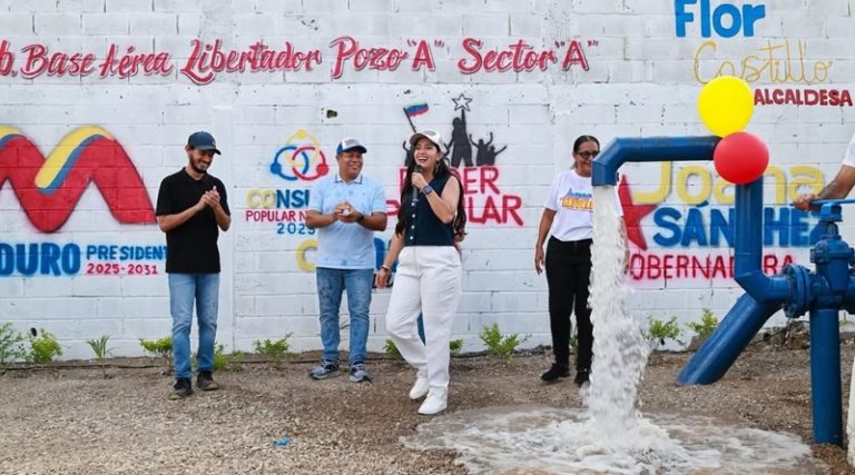 ***Durante un pase presidencial, la Vocera del Poder Popular para la Gobernación de Aragua, Joana Sánchez, anunció la entrega de un pozo profundo de agua potable rehabilitado en la comuna Libertadoras y Libertadores de la parroquia San Martín de Porres del municipio Libertador como parte de las obras realizada a través de los Proyectos del Pueblo, cumpliendo la segunda transformación de la Ley Orgánica de las 7T.***