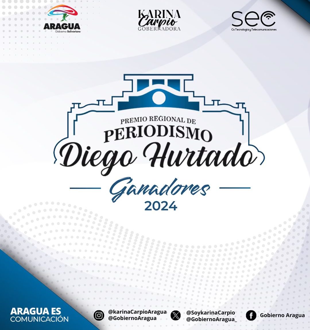 CIUDAD MCY.-En las redes del Gobierno regional y de la gobernadora Karina Carpio, se anunciaron los ganadores del Premio Regional de Periodismo Diego Hurtado 2024 y el Premio de Comunicación Popular y Alternativa Hugo Chávez 2024.