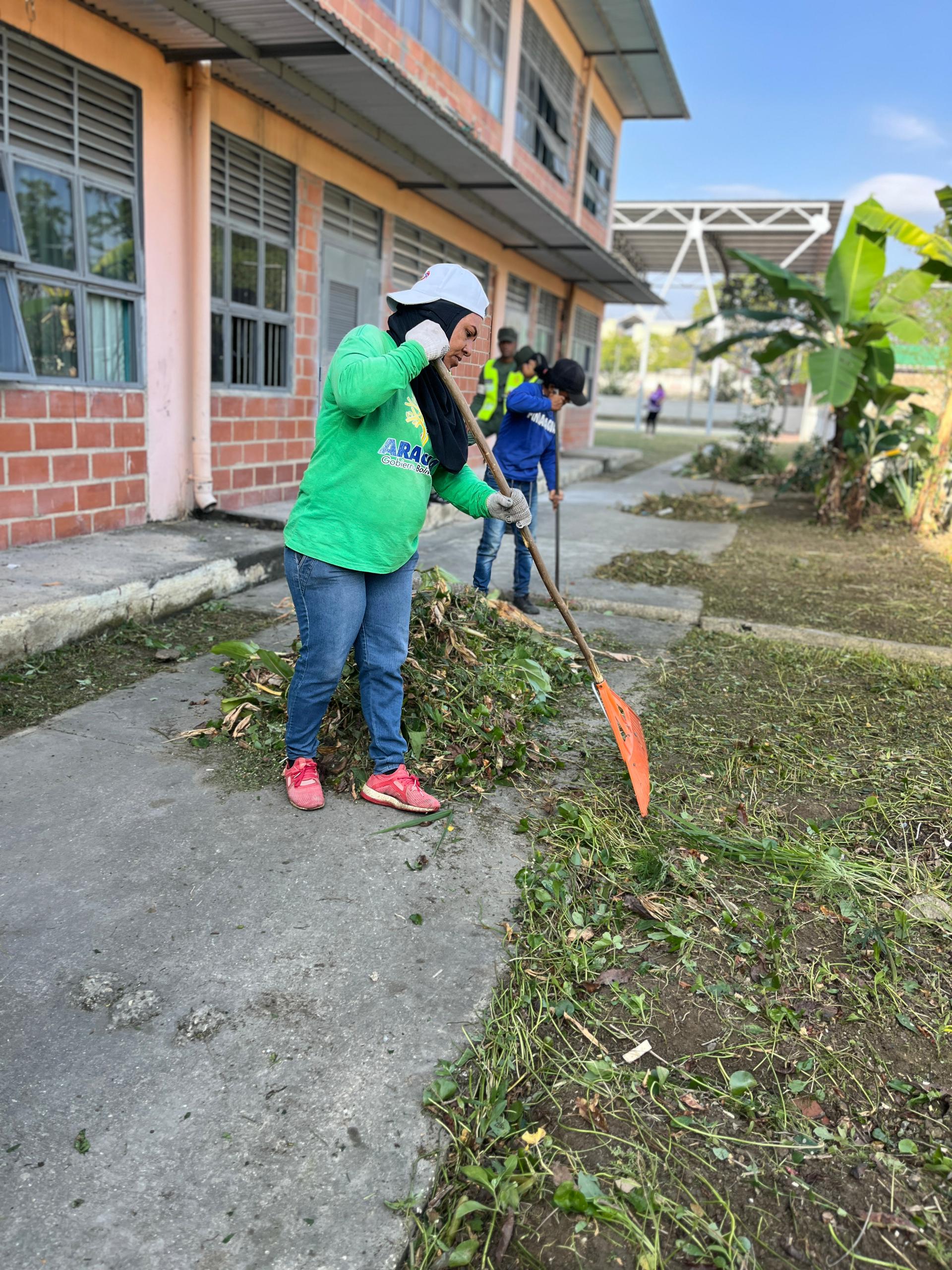 Durante la actividad, en coordinación con Aramica Minas y Vías de Aragua, se ejecutaron labores de limpieza, mantenimiento preventivo y correctivo, saneamiento ambiental y disposición final de desechos sólidos y vegetales, en planteles como: