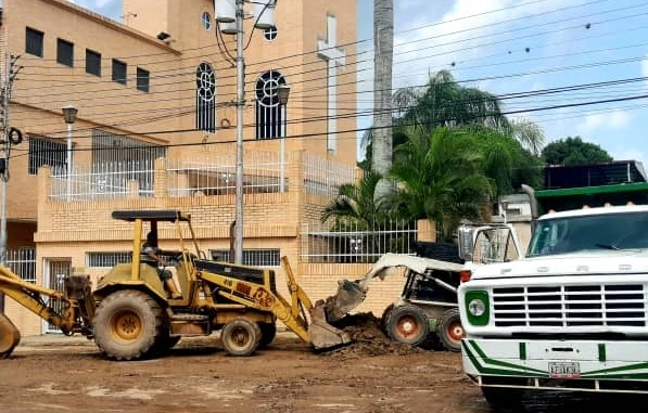 Cuadrillas de la Dirección de Mantenimiento y Servicios Públicos de la alcaldía se hicieron presentes en el lugar limpiando y despejando la calle con el apoyo de maquinaria pesada.