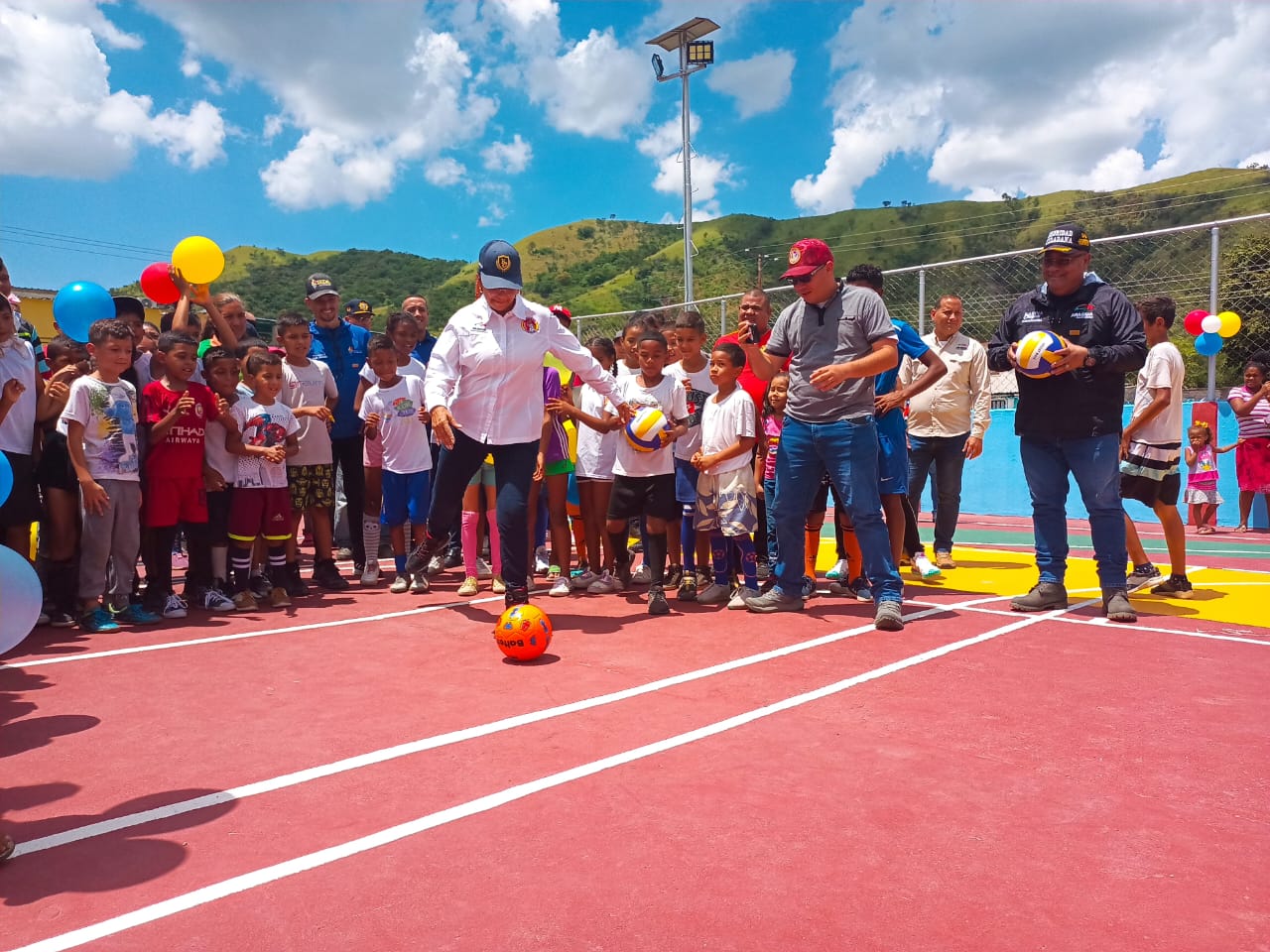 CIUDAD MCY.-El Gobierno regional reinauguró la cancha deportiva “Prados de Paya II”, ubicada en el municipio Santiago Mariño, como un espacio de sano esparcimiento y para fomentar el deporte en la localidad.