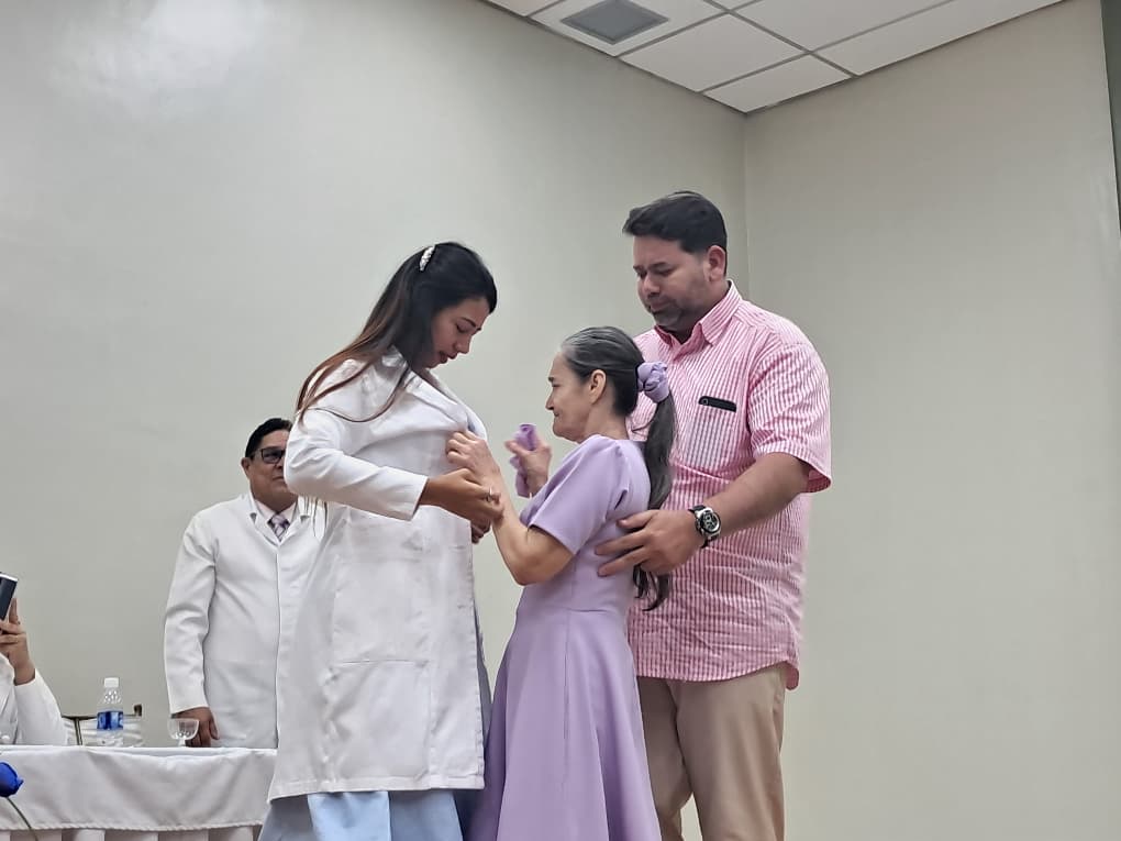 En este acto magistral se realizó la imposición de batas blancas a los 17 aspirantes, acción que marcó un significativo momento ya que reafirma y fortalece la vocación de los estudiantes y los compromete con la ética profesional para desempeñar su rol como médicos.