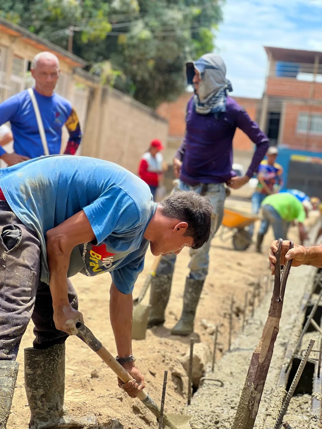 En la comuna Alexis Caro, sector Trinidad de Coropo, los trabajos de aceras y brocales alcanzan un 75% de ejecución, con 255 metros lineales construidos y 34,5 metros cúbicos de concreto vaciados.