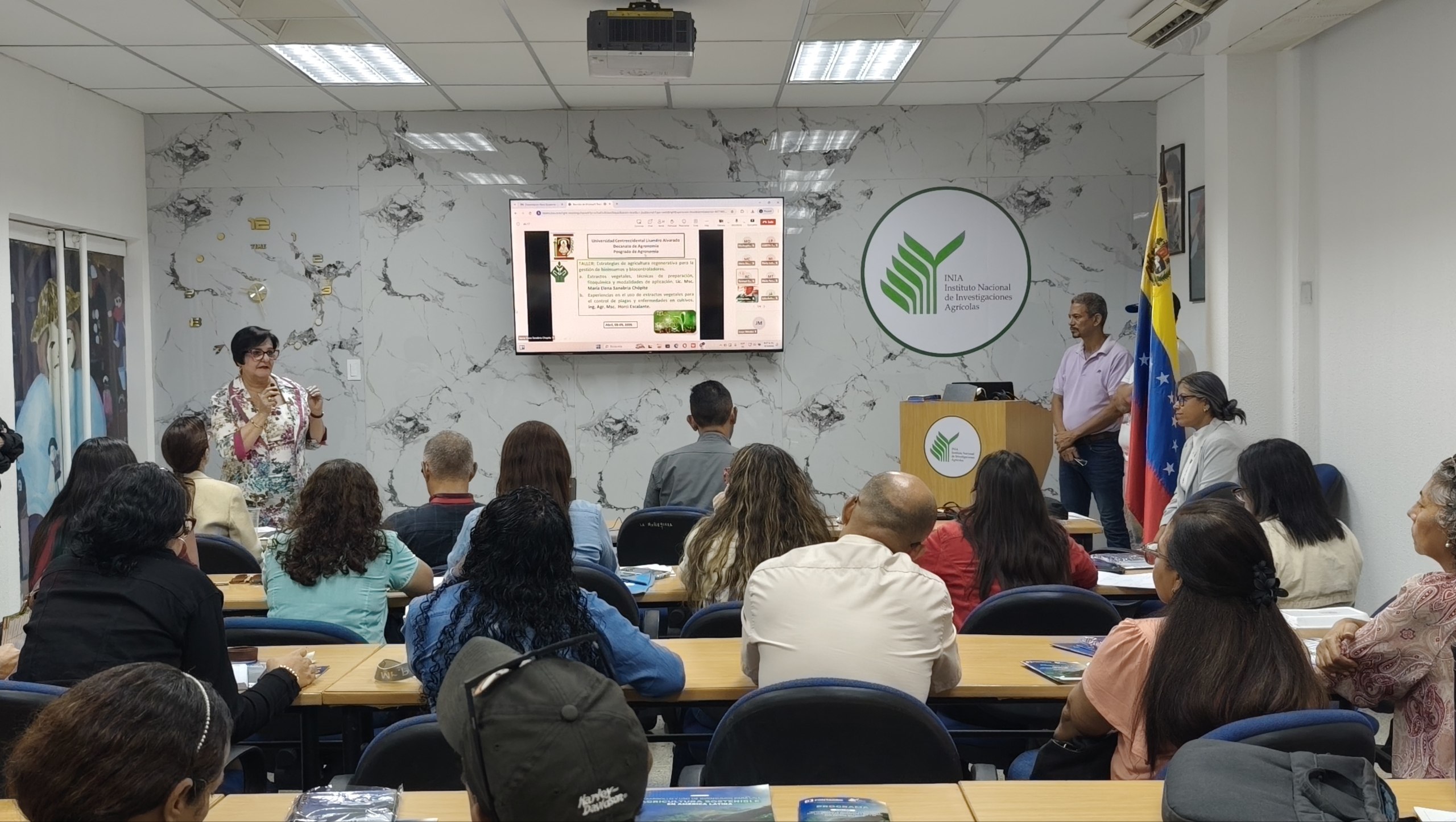 La jornada académica se llevó a cabo en la sede administrativa del INIA, ubicada en el estado Aragua, y estuvo presidida por la Dra. Margaret Gutiérrez, presidenta del INIA, junto a la gerente de investigación, Belkys Vásquez, y los coordinadores del taller, Raúl Jiménez y Heidi Vilera. Al curso asistieron investigadores provenientes de las unidades ejecutoras del INIA en los estados Apure, Aragua, Lara, Mérida, Portuguesa y Yaracuy, quienes son especialistas en áreas como biotecnología, protección vegetal, micología, musáceas, oleaginosas y leguminosas, biología del suelo, biofertilizantes, fitopatología, manejo de enfermedades, agroecología y bioinsumos.