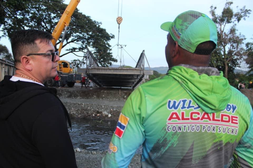 El alcalde Wilson Coy, señaló que uno de los puentes al que llamó “Rafael Urdaneta”, está siendo instalado entre el sector El Toco y Jardines de Cagua y conectará al menos 10 sectores con la comunidad La Segundera.
