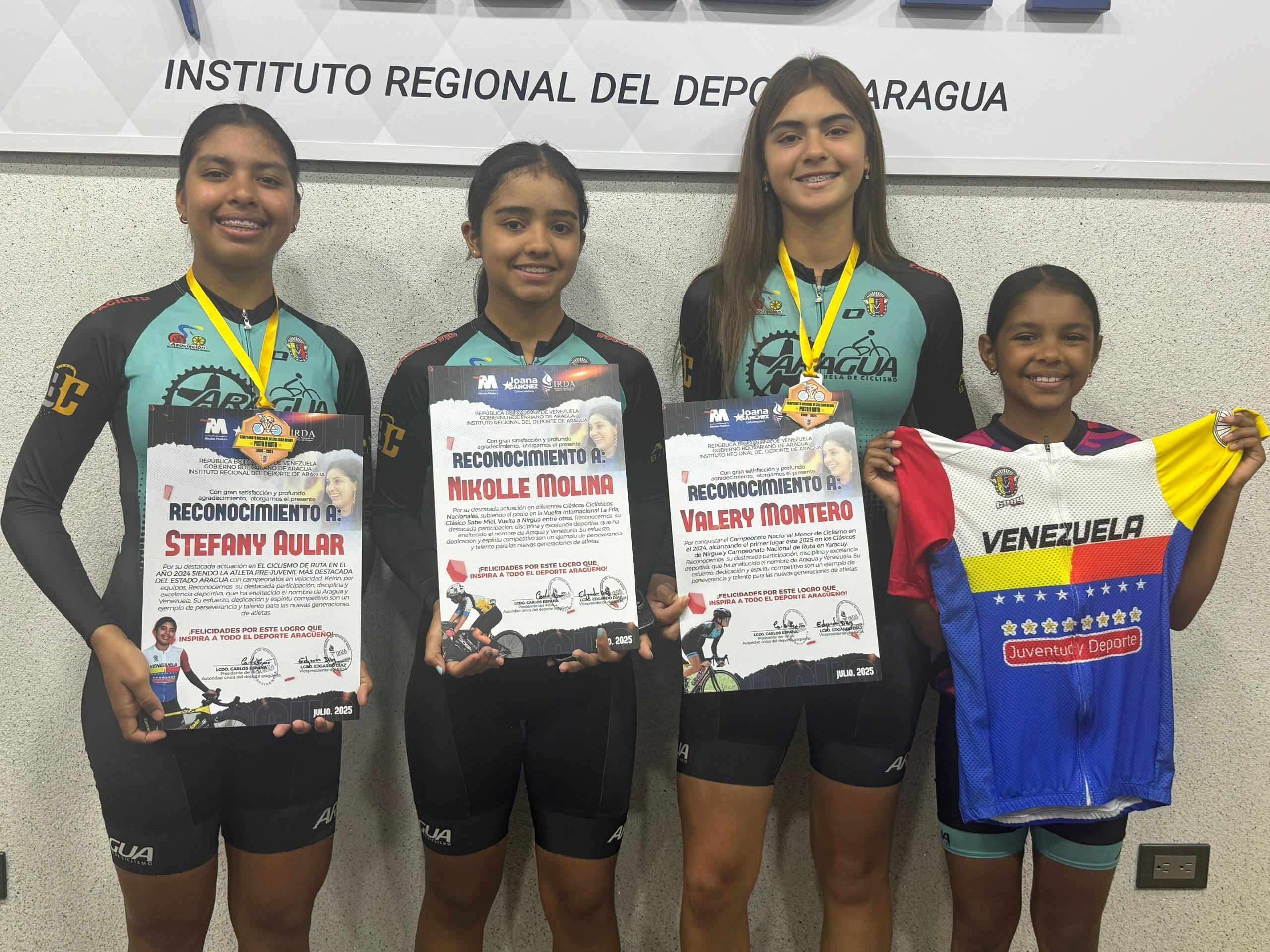 CIUDAD MCY.-El Instituto Regional del Deporte de Aragua (IRDA) entregó reconocimientos a destacadas ciclistas juveniles, en un evento que también sirvió para reafirmar el compromiso de la institución con el desarrollo del ciclismo en el estado.