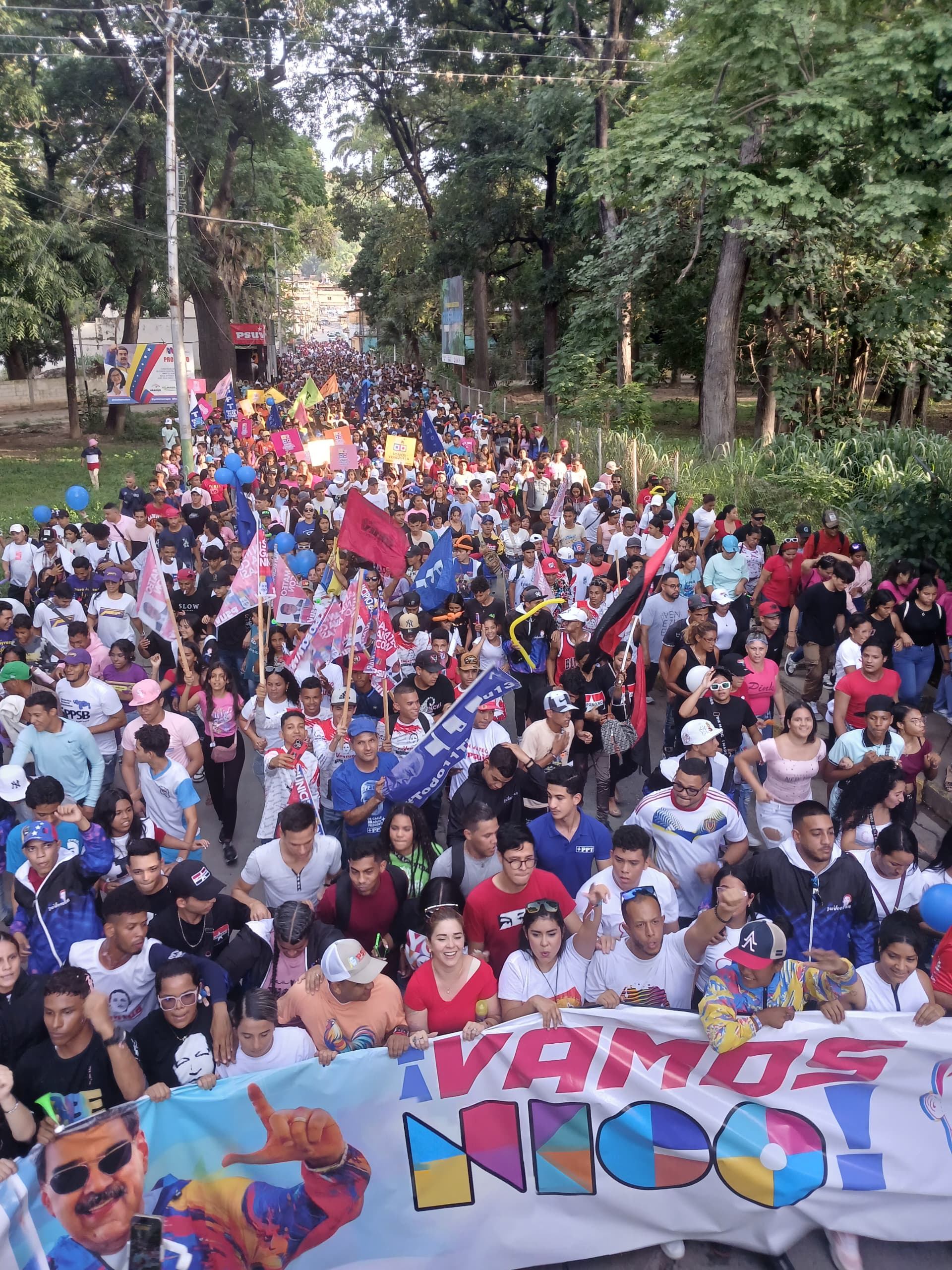 Específicamente en el casco central de La Victoria, los jóvenes aragüeños, motivados y entusiasmados, iniciaron su recorrido desde la plaza Bolívar hasta llegar al Boulevard Luis Alfonzo Larráez (plaza Ribas), donde alzaron la voz afirmando su voto seguro para el candidato oficial del Partido Socialista Unido de Venezuela (PSUV), Nicolás Maduro.