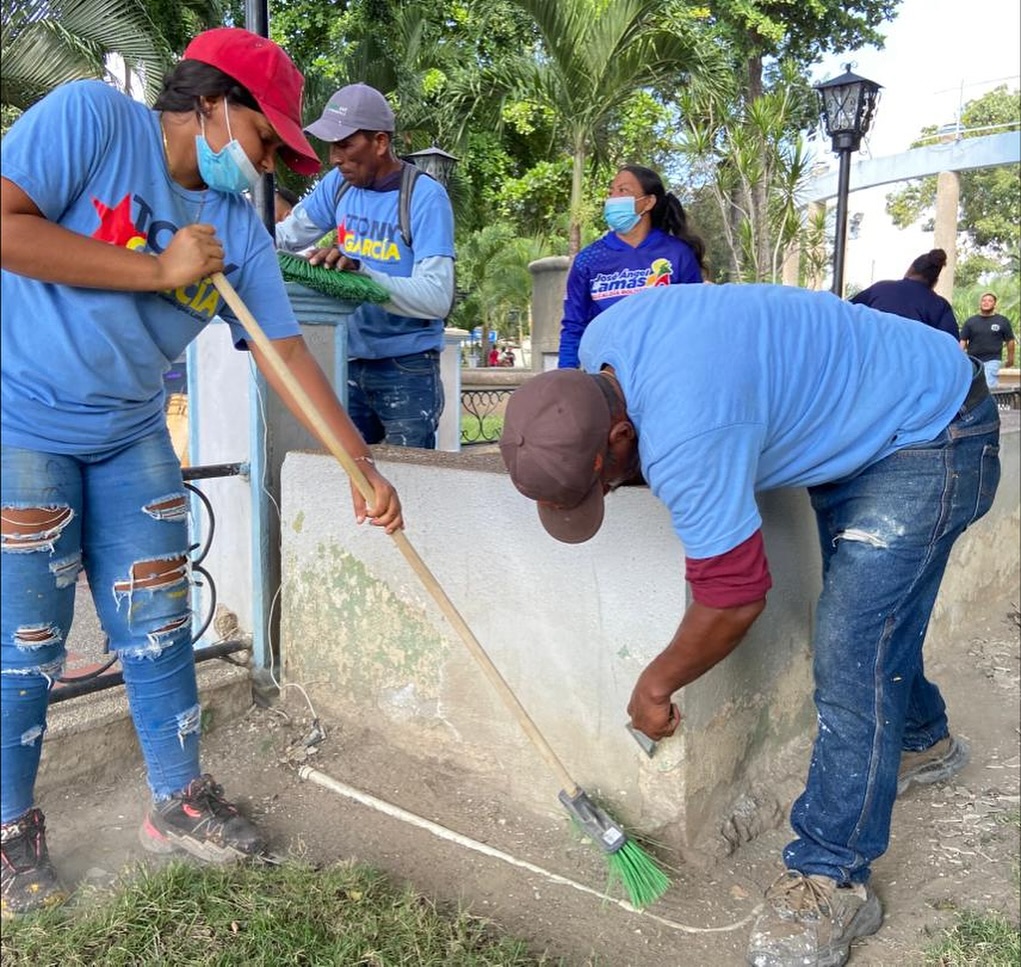 CUIDAD MCY.-La Alcaldía de José Ángel Lamas, a través de su equipo de Servicios Públicos, dió inicio a los trabajos de rehabilitación integral de la Plaza Bolívar de Santa Cruz de Aragua.