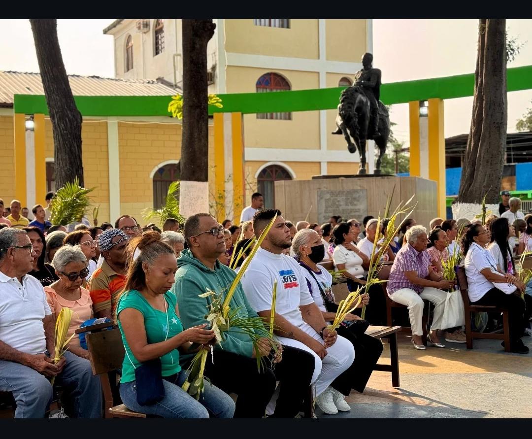 CIUDAD MCY.- En un ambiente de recogimiento, fe y profunda devocion, el municipio Francisco Linares Alcántara fue testigo de una solemne eucaristia propia del Domingo de Ramos, cuya remembranza bíblica evoca la entrada de Jesucristo a Jerusalén y con ello el inicio de la Semana Santa.