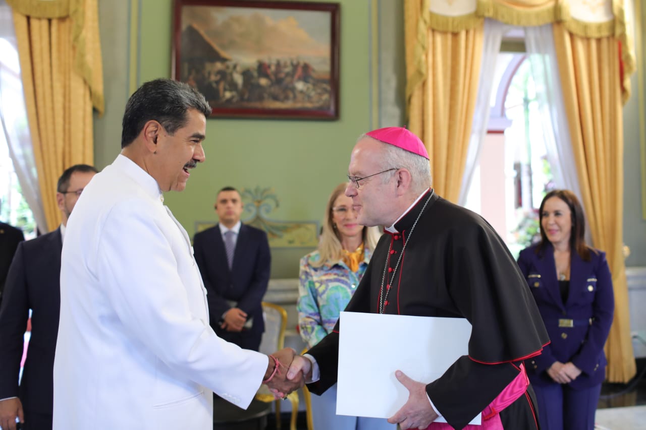 CIUDAD MCY.- El presidente de la República, Nicolás Maduro, recibió este martes en el Palacio de Miraflores, Caracas, las Cartas Credenciales del Nuncio Apostólico Monseñor Alberto Ortega Martín.
